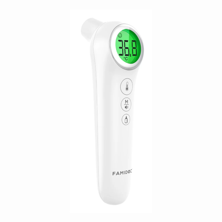 Podsvícený displej s barevným rozlišením teploty: Při naměřené teplotě (v rozmezí 37.6 až 42,9°C) se změní barva podsvícení ze „zelené“ na „červenou“, jinak zůstává barva podsvícení „zelená“.
